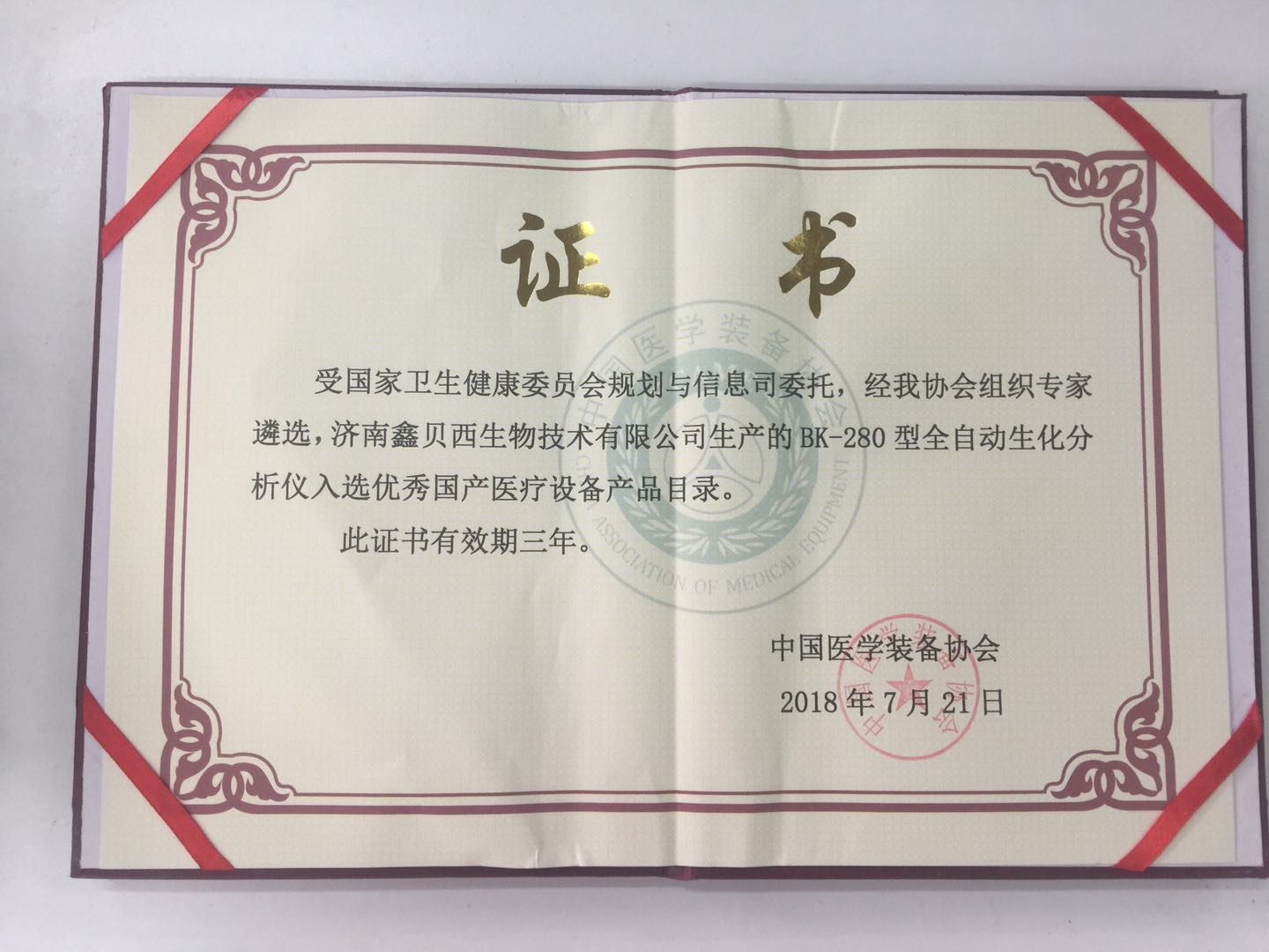 热烈祝贺BIOBASE系列全自动生化分析仪七个型号全部入选优秀国产医疗设备产品目录