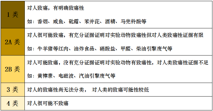 按照对人的致癌危险性,IARC将对人体有致癌风险的化学物分为4类。