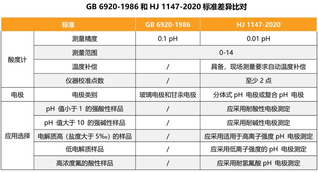 随着科学的发展和检测技术的提高,《GB 6920-1986水质 pH值的测定 玻璃电极法》已经跟不上现有水质的检测,中国生态环境部于发布了《HJ 1147-2020 水质 pH值的测定 电极法》,将自6月1日起替代原有的GB 6920-1986标准。本标准适用于地表水、地下水、生活污水和工业废水中pH值的测定,测定范围为0~14。新标准与旧标准有哪些不同?