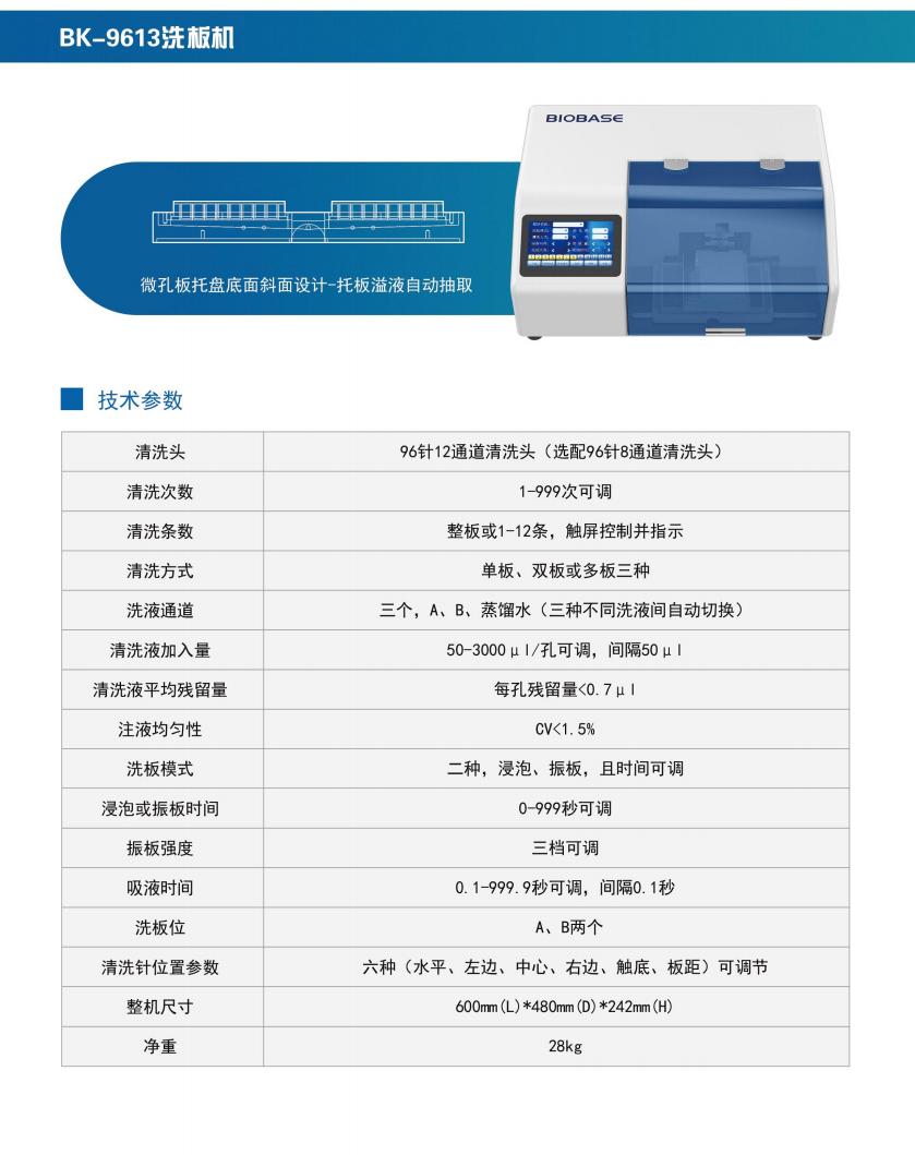 洗板机是专门清洗酶标板的医疗器械,一般和酶标仪配套使用。主要用于清洗酶标板检测后的一些残留物质,从而降低后续检测过程中因残留物导致的误差。它已经被广泛地用于医院、血站、卫生防疫站、试剂厂、研究室等存在酶标板清洗工作的实验室。