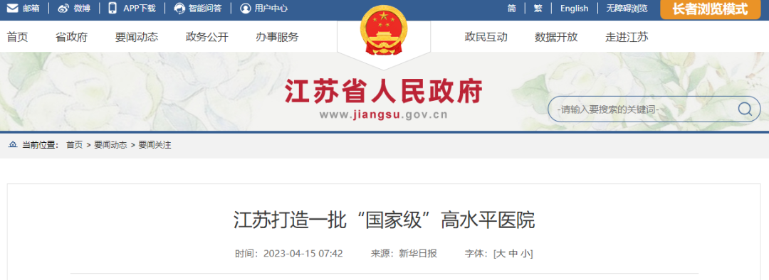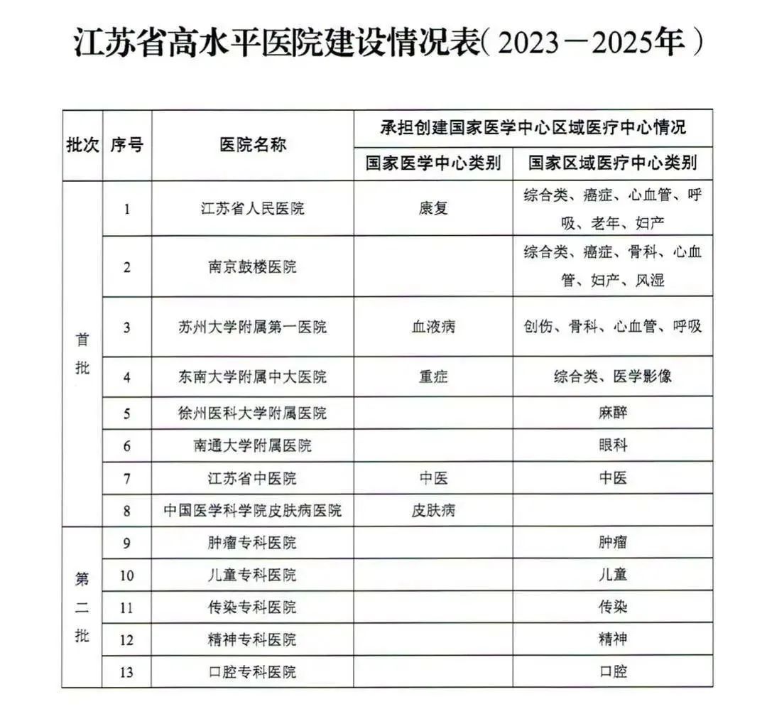 近日,江苏省政府办公厅正式印发了《江苏省高水平医院建设实施方案》,明确要打造一批“国家级”高水平医院。
