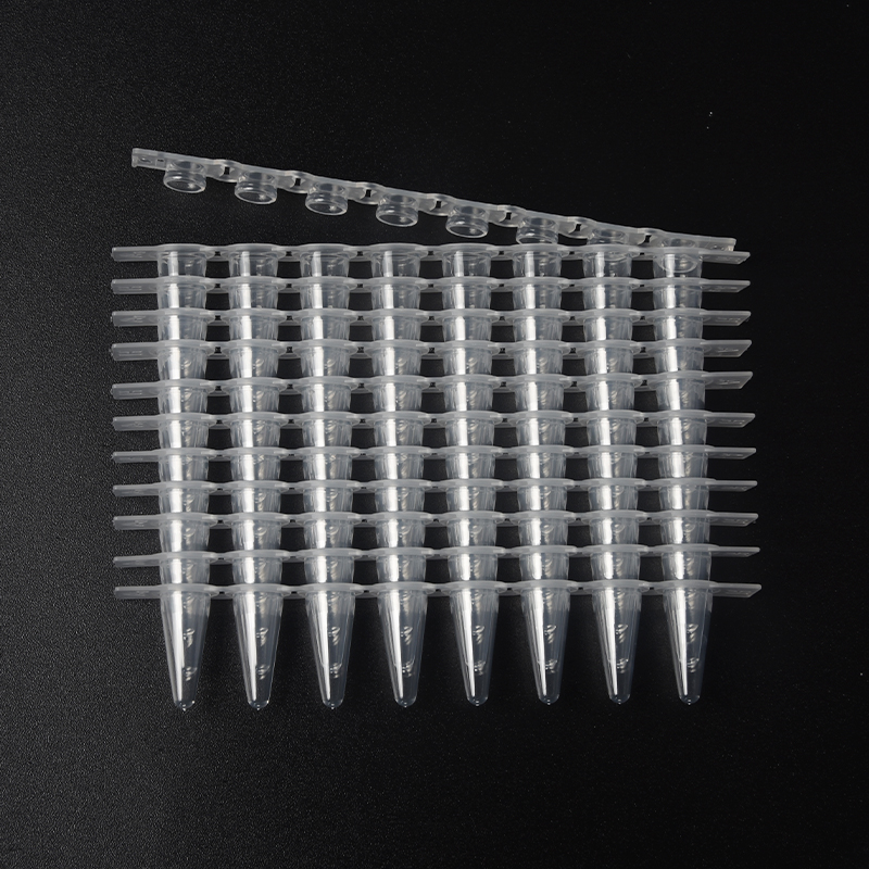 八连管:最早的塑料离心管都是单个的,在批量检测时工作量大,不方便操作,于是发明了8连管,现在也有12连管。