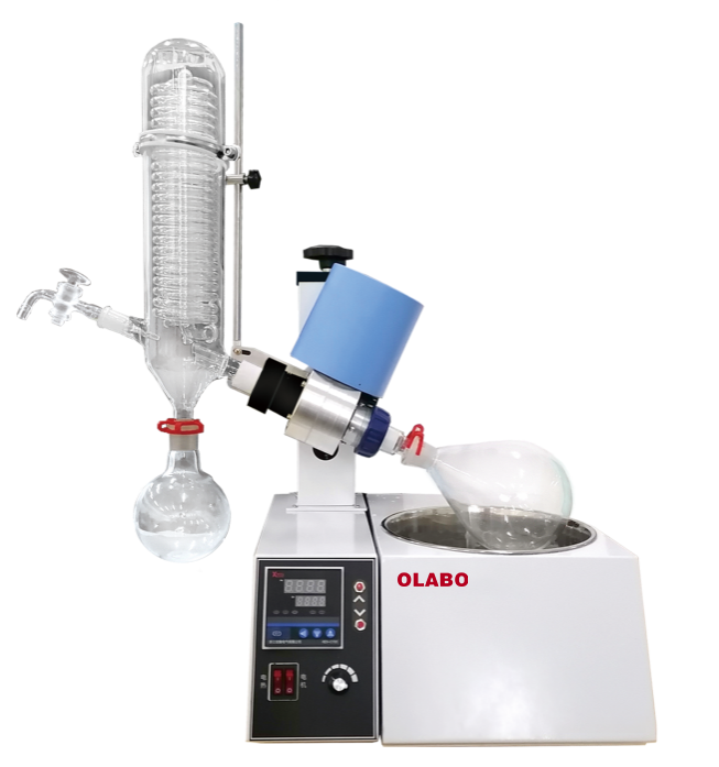 旋转蒸发仪是采用旋转蒸发瓶增大蒸发面积在减压装置下置于水?。ɑ蛘哂驮。┲幸槐咝?,一边加热,使瓶内溶液扩散蒸发的装置,是蒸发、浓缩、结晶、干燥、分离、溶媒回收等过程必不可少的仪器设备;是化学工业,医药工业,高等院校和科研实验室等单位用于浓缩,干燥,回收等理想的必备基本仪器。