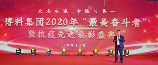 2020年10月8日下午,博科控股集团有限公司在总部一楼举行了“最美奋斗者”暨抗疫先进表彰盛典。博科集团董事长甘宜梧、各部副总裁及管理人员和百余名受表彰人员出席了大会。