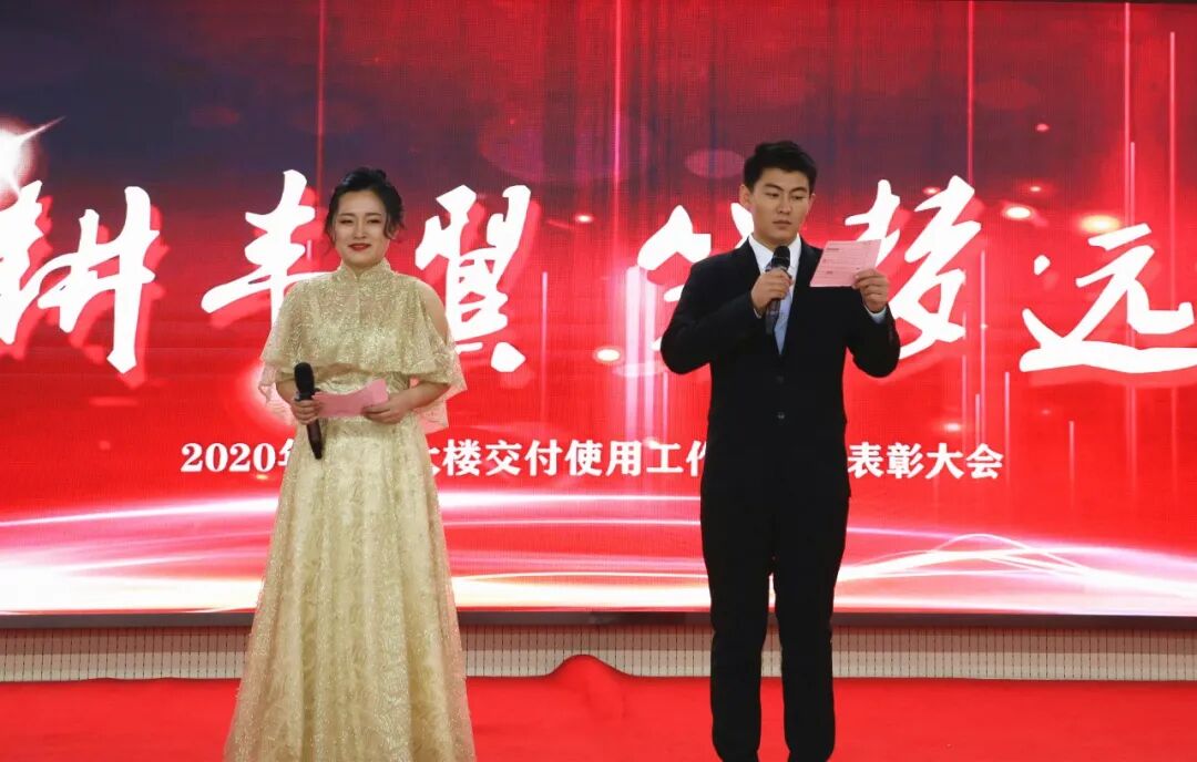 表彰大会以展示总部大楼建设历程的宣传片拉开帷幕,重现了从一片绿悠悠的庄稼地到现在楼宇耸立的建设过程,从开槽动土,到主体完成,从内外装饰到景观绿化,每一个节点无不在向我们展示着每位参建人员奋斗的的汗水以及不忘初心、砥砺前行的开拓精神。
