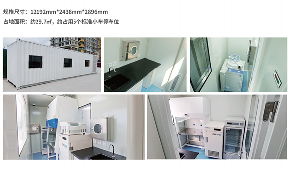 存放占地面积30m3左右。应急时可作为车载实验室使用,运到疫情发生地时简单调试即可使用。