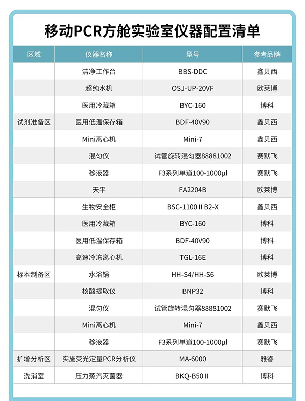 简单来讲就是用方舱搭建一个符合PCR实验室建设标准的场所,将相关设备放到方舱内,形成可以移动的简易PCR实验室。别看是简易实验室,但是方舱内的设备可是一点都不简易,可以说是“麻雀虽小,五脏俱全”。