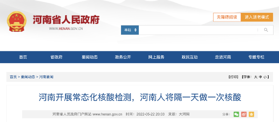 近日,河南省疫情防控指挥部下发通知,为方便群众落实常态化核酸检测要求,打造15分钟便民核酸检测“采样圈”,免费向全省居民及其他在豫人员提供采样检测服务。根据疫情防控需要,河南开展常态化核酸检测,全省居民及其他在豫人员原则上每48小时应完成至少一次核酸采样(间隔一…