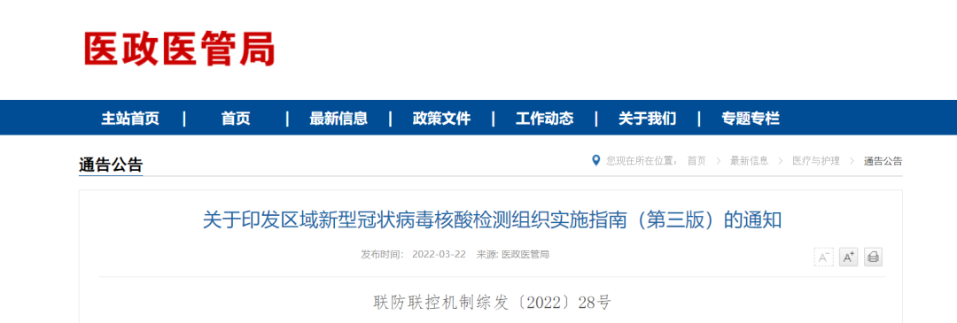 3月22日下午,国家卫健委发布《关于印发区域新型冠状病毒核酸检测组织实施指南(第三版)的通知》(以下简称《通知》)。《通知》针对奥密克戎变异株传播速度快、传染性强、传播隐匿等特点修订,并提出全新要求。